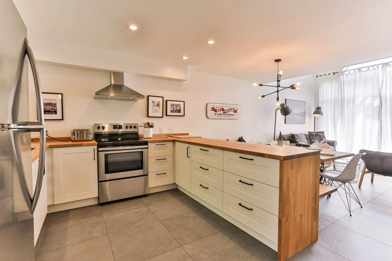 You can access most amenities within walking distance and you also have access to a free shuttle to the pedestrian village just outside the condo. Mont-Tremblant public buses are free all around town.
