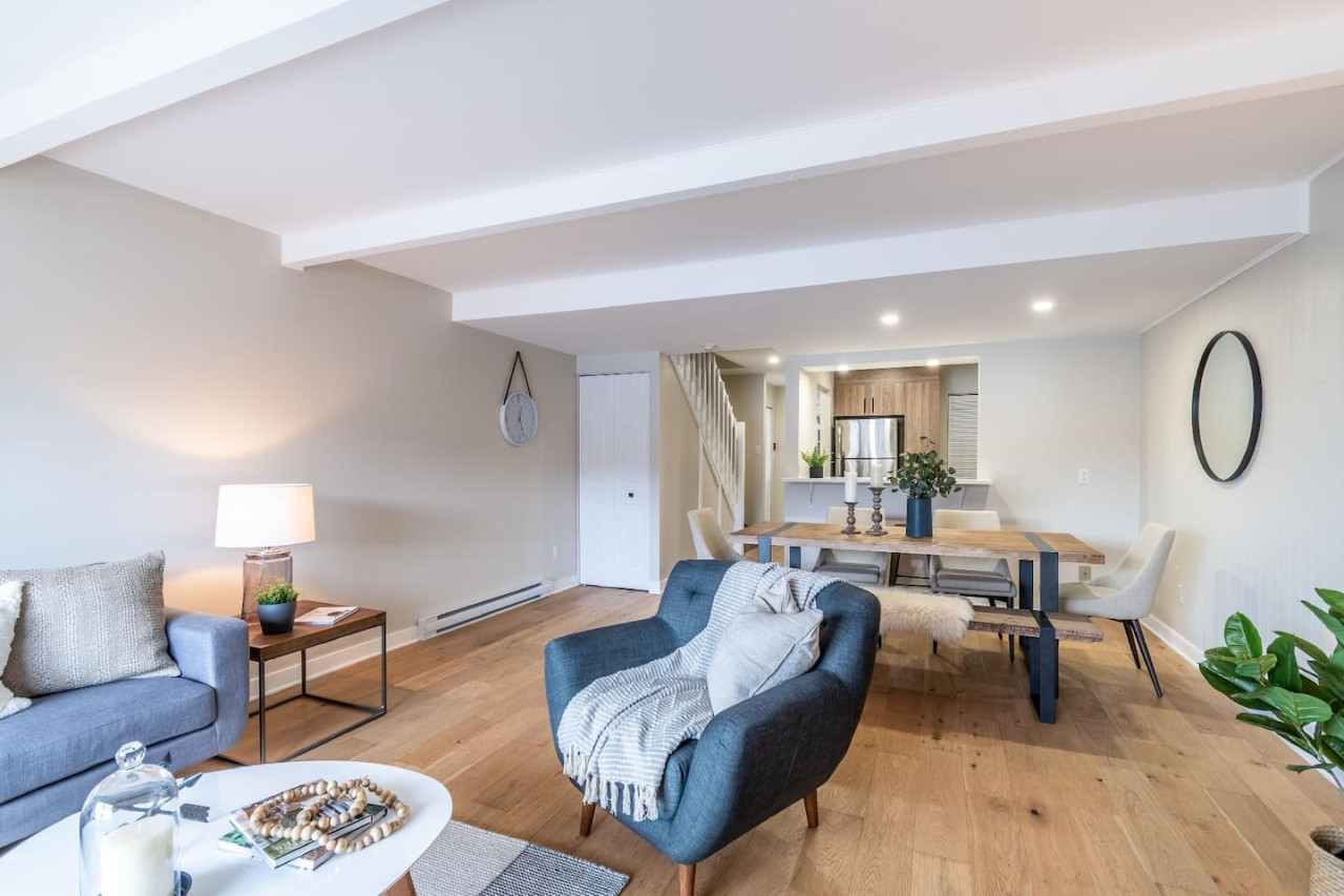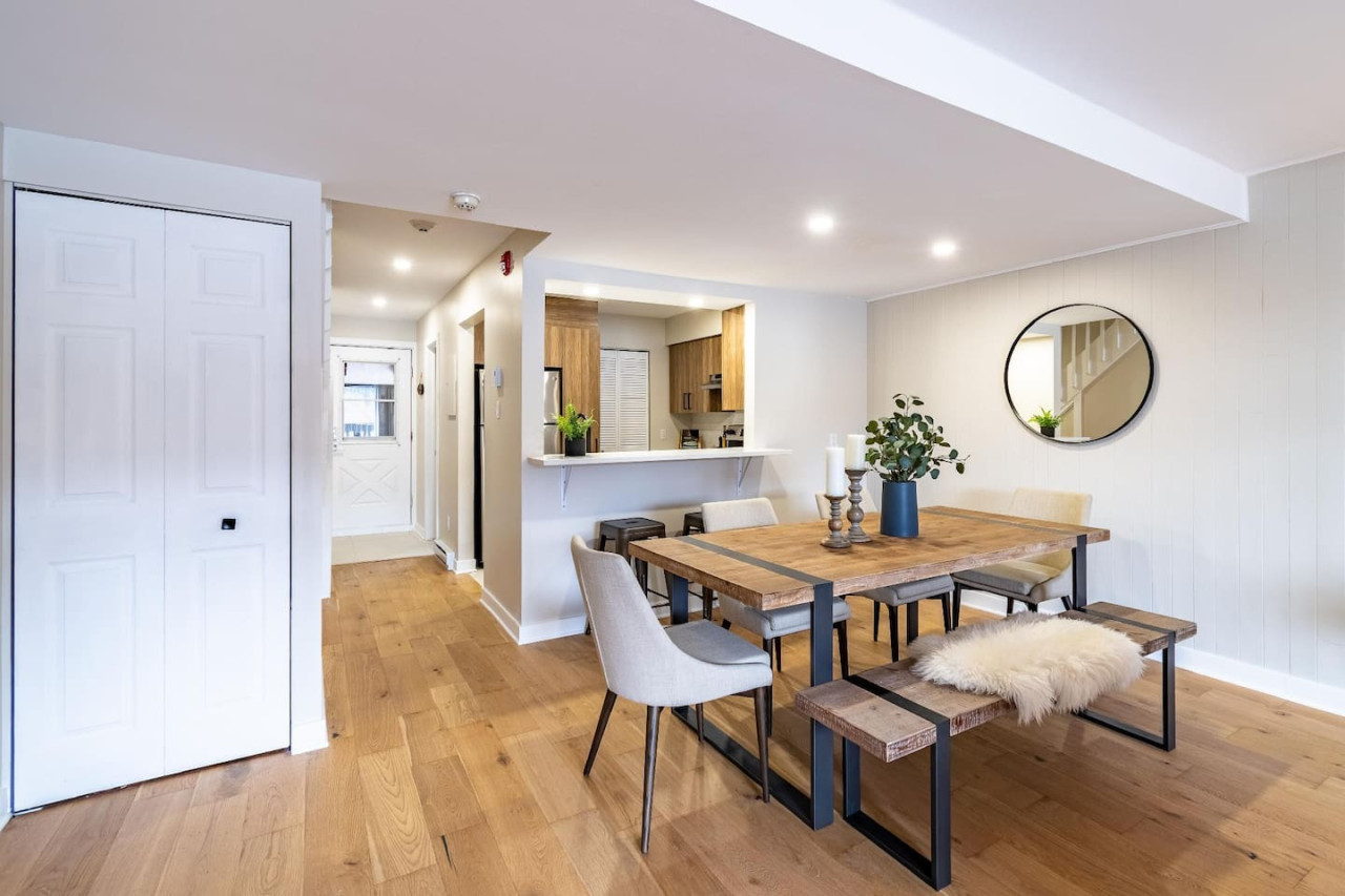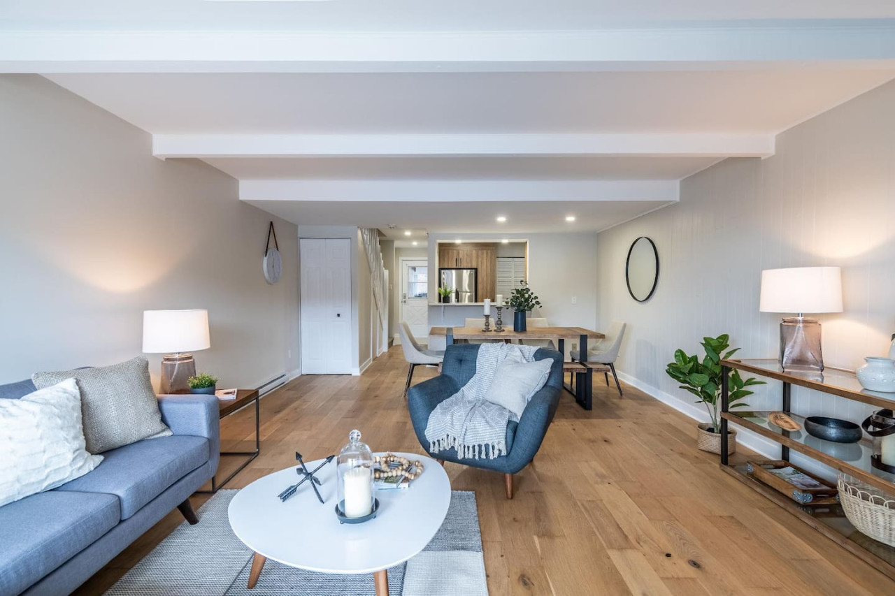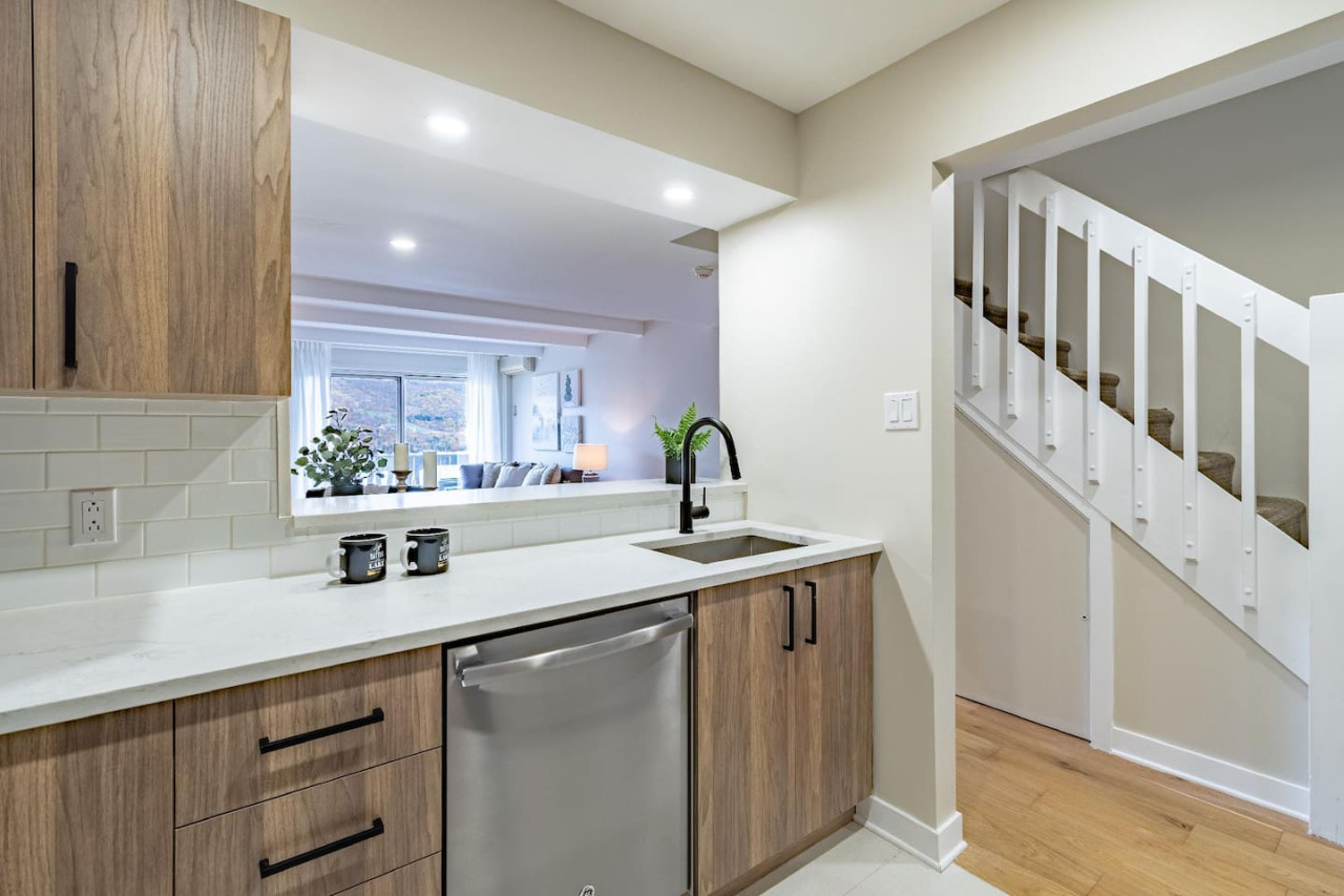 Freshly renovated with a wood fireplace, this condo offers breathtaking views of Mont Tremblant and is only 5 minutes by car to the village. Set on two floors this condo is ideal for a family looking for a peaceful and quiet location while still being close to the pedestrian village. Bedroom 1: 1 queen bed / Bedroom 2: 1 bunk bed (double bed bottom and single top) + 1 single bed / Living Room: sofa bed / Safe and clean stay : All bedding is washed in industrial machines at high temperature and then pressed. You will receive a detailed check-in guide 48 hours prior to arrival. Customer service is available everyday from 9:00 AM to 8:00 PM. An emergency number is provided upon arrival. You will be able to reach us at all times. A five minute drive will bring you into the heart of the famous and colorful Tremblant resort pedestrian village where you will find tons of shops, restaurants, activities and of course, the number one ski and golf resort in Eastern North America. From this complex, the best way to get around is by car. Mont-Tremblant public buses are free all around town. Wall-Mounted AC in the main room. No central AC. Before you arrive, you will be asked to complete guest verification through third-party provider Truvi. This is done to ensure we are keeping up-to-date with short-term rental regulations as well as providing both our guests and our properties with extra protection. To cover you up to 500CAD, it includes the choice between: Option 1: a security deposit with a non-refundable fee of 15CAD Option 2: a non-refundable damage waiver of 35CAD. Truvi will contact you via email and/or text to complete the verification. Please do so prior to arriving at the property to enable a quick and easy check-in process.