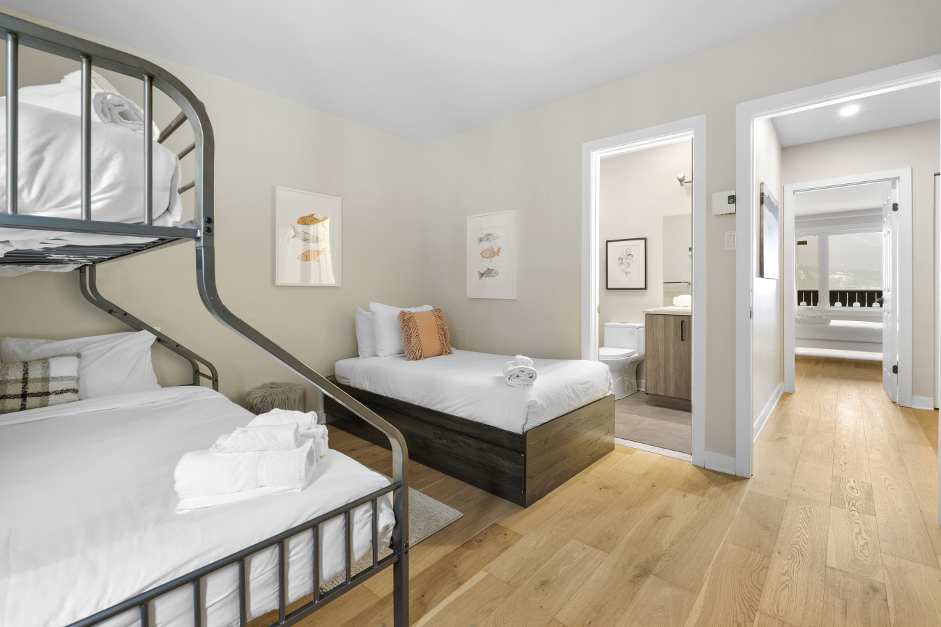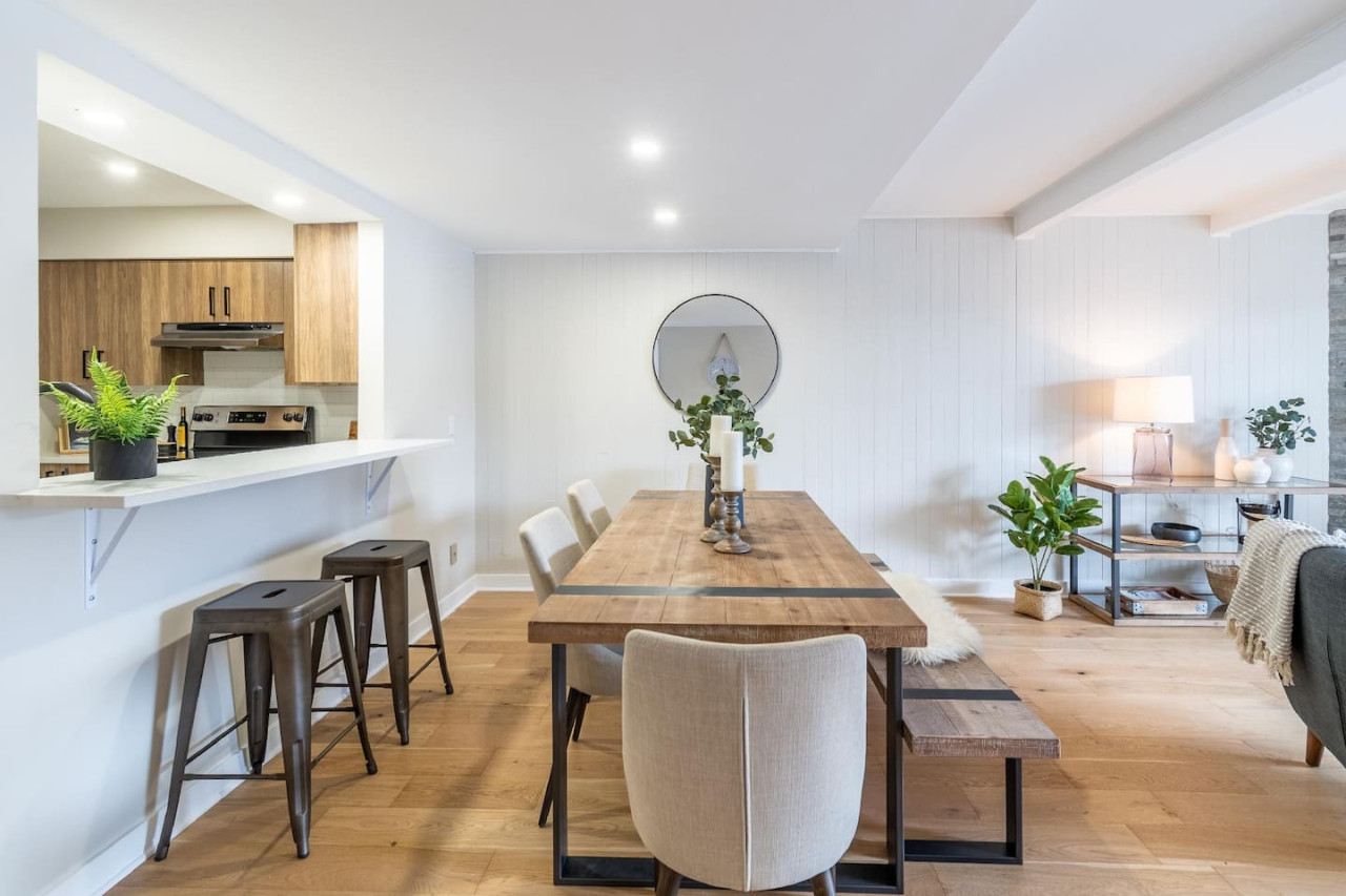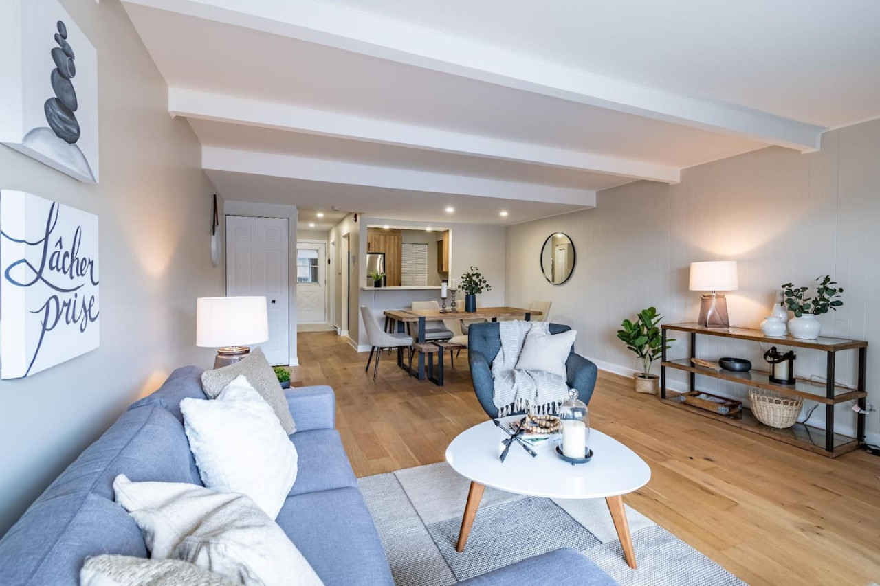 Freshly renovated with a wood fireplace, this condo offers breathtaking views of Mont Tremblant and is only 5 minutes by car to the village. Set on two floors this condo is ideal for a family looking for a peaceful and quiet location while still being close to the pedestrian village. Bedroom 1: 1 queen bed / Bedroom 2: 1 bunk bed (double bed bottom and single top) + 1 single bed / Living Room: sofa bed / Safe and clean stay : All bedding is washed in industrial machines at high temperature and then pressed. You will receive a detailed check-in guide 48 hours prior to arrival. Customer service is available everyday from 9:00 AM to 8:00 PM. An emergency number is provided upon arrival. You will be able to reach us at all times. A five minute drive will bring you into the heart of the famous and colorful Tremblant resort pedestrian village where you will find tons of shops, restaurants, activities and of course, the number one ski and golf resort in Eastern North America. From this complex, the best way to get around is by car. Mont-Tremblant public buses are free all around town. Wall-Mounted AC in the main room. No central AC. Before you arrive, you will be asked to complete guest verification through third-party provider Truvi. This is done to ensure we are keeping up-to-date with short-term rental regulations as well as providing both our guests and our properties with extra protection. To cover you up to 500CAD, it includes the choice between: Option 1: a security deposit with a non-refundable fee of 15CAD Option 2: a non-refundable damage waiver of 35CAD. Truvi will contact you via email and/or text to complete the verification. Please do so prior to arriving at the property to enable a quick and easy check-in process.