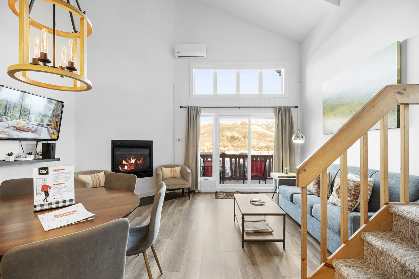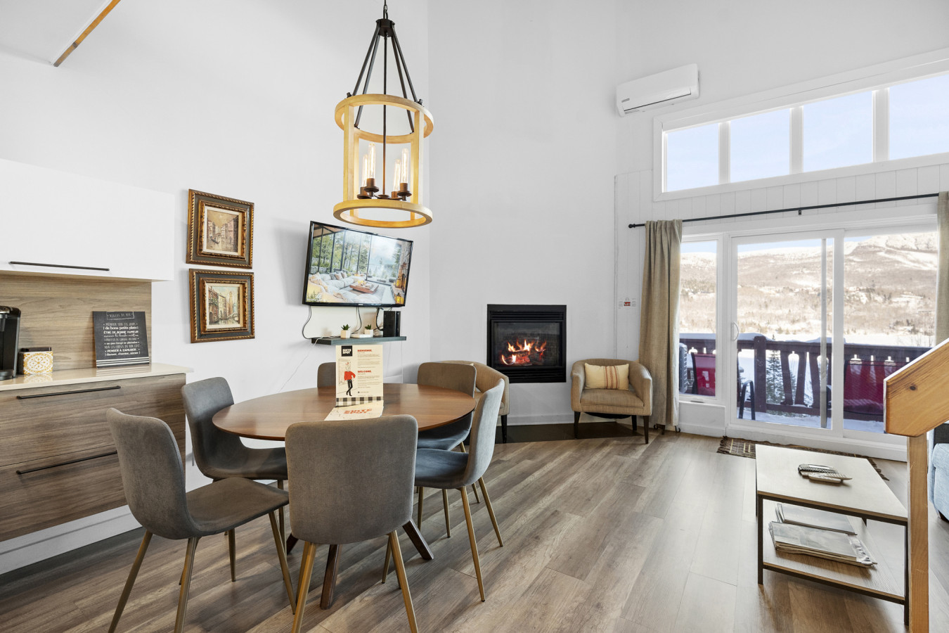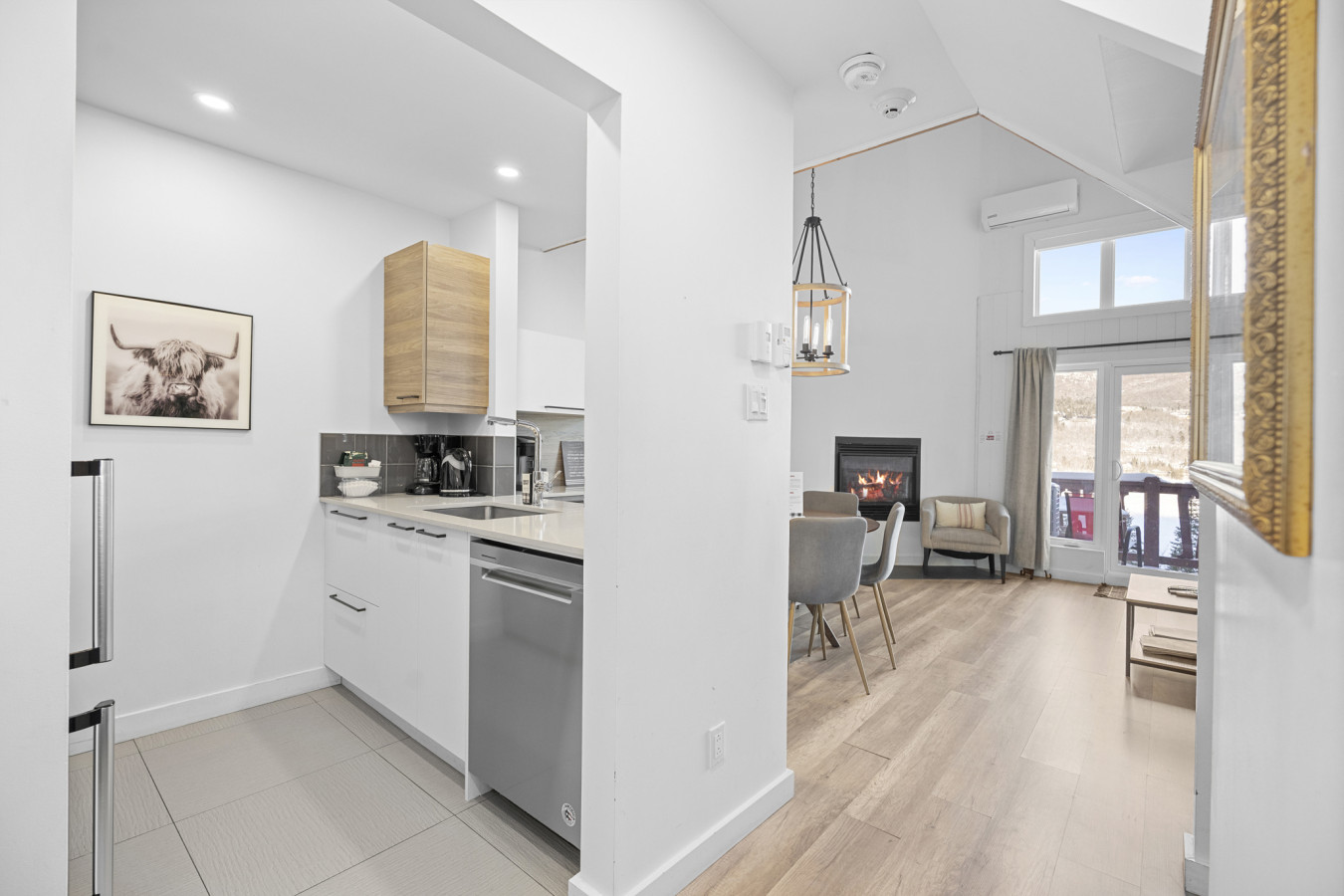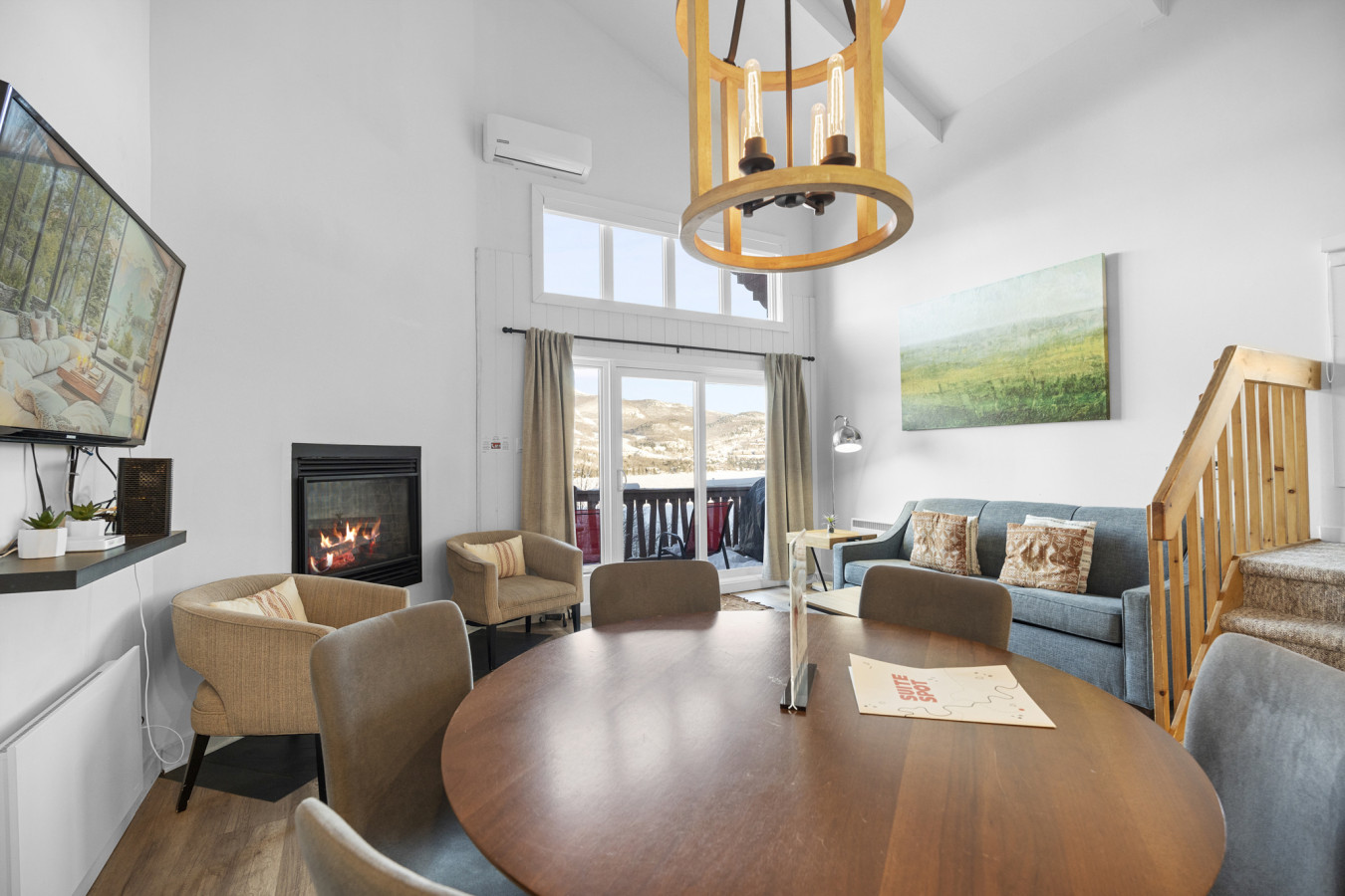 This 2 bedroom gem is in the ideal location for a Tremblant getaway. Only 5 minutes to the heart of the resort, this spot is close enough to the village yet far enough for some well deserved peace and quiet. Sit back and enjoy the gas-powered fireplace while taking in the breathtaking views of the lake and Mont-Tremblant itself. Whether you are coming to hike, ski, golf or relax, you will love to call this condo your home.