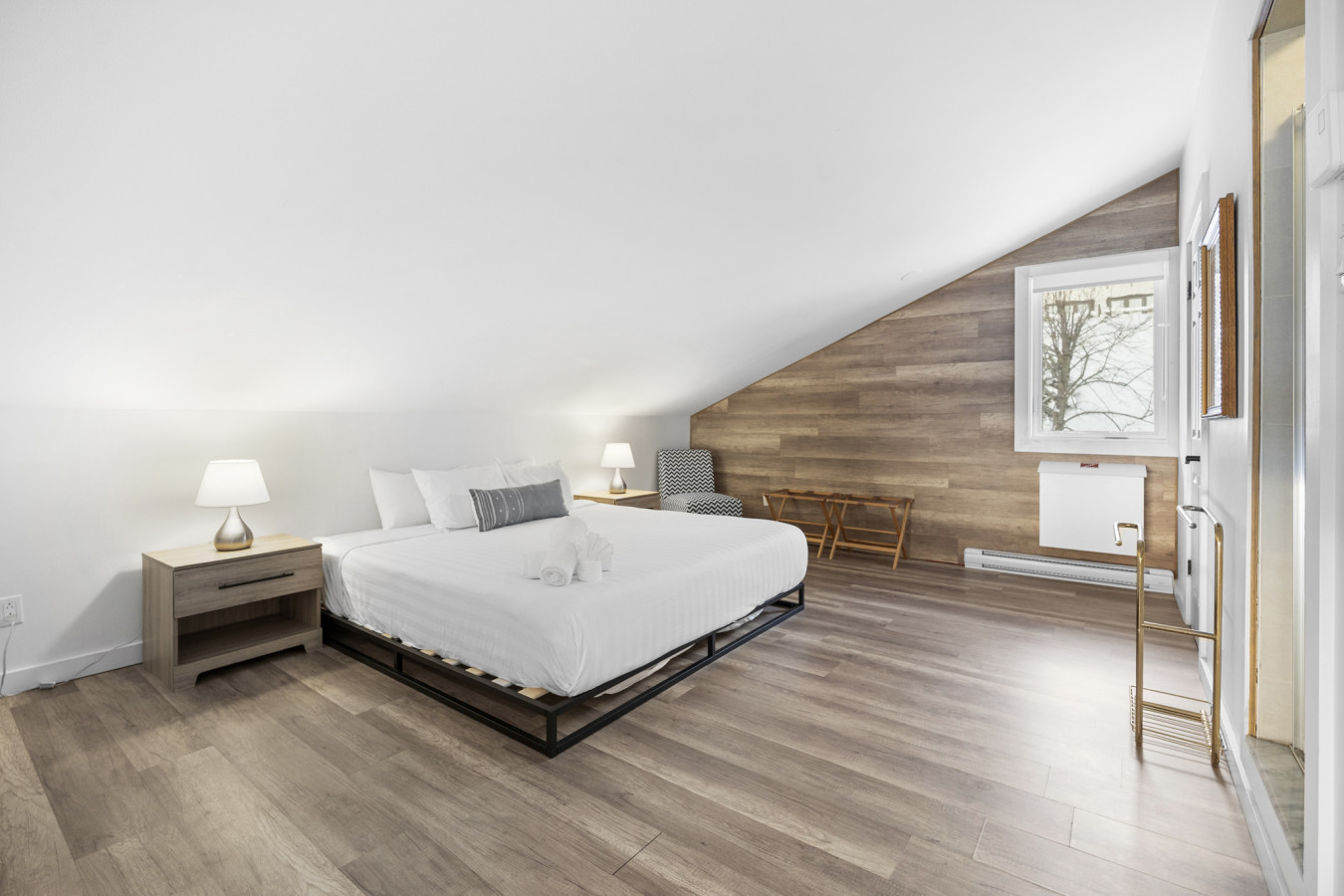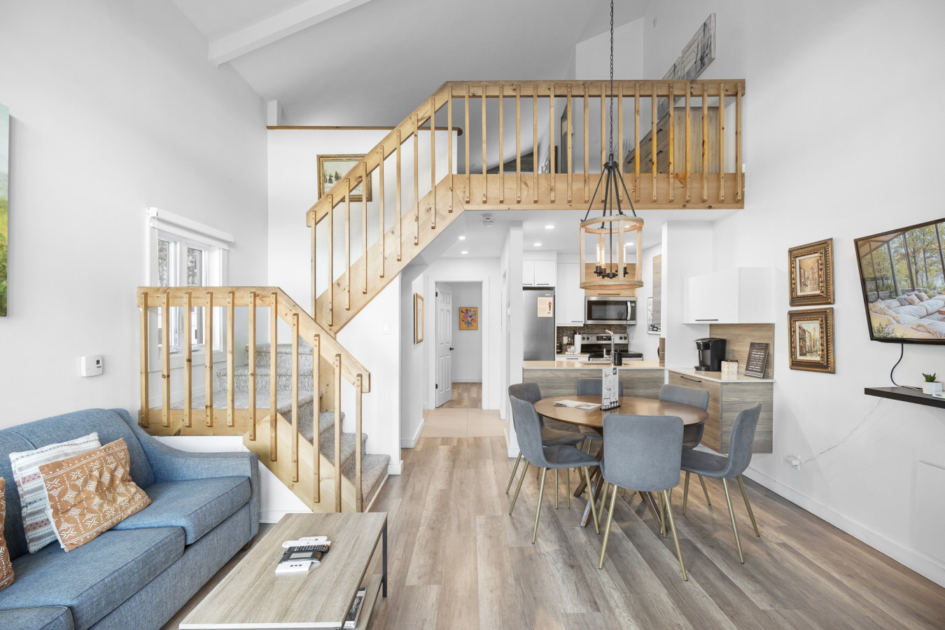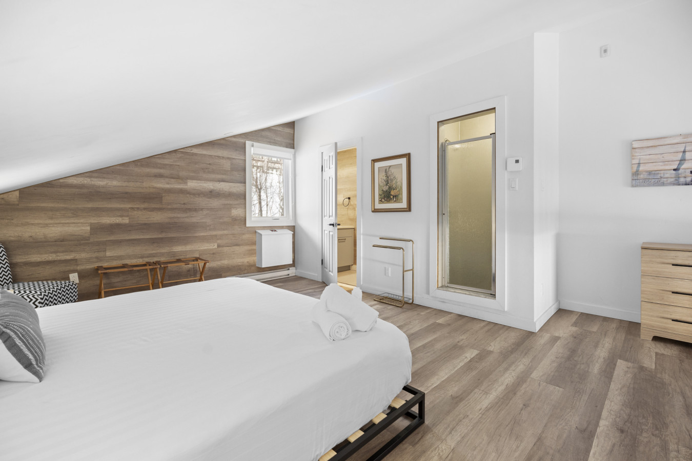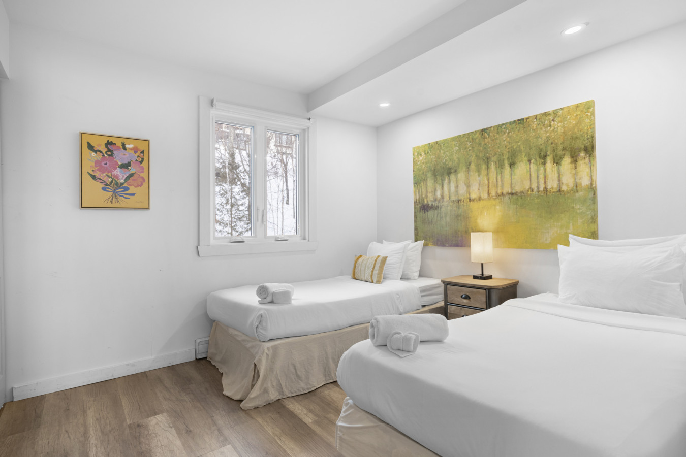 This 2 bedroom gem is in the ideal location for a Tremblant getaway. Only 5 minutes to the heart of the resort, this spot is close enough to the village yet far enough for some well deserved peace and quiet. Sit back and enjoy the gas-powered fireplace while taking in the breathtaking views of the lake and Mont-Tremblant itself. Whether you are coming to hike, ski, golf or relax, you will love to call this condo your home.