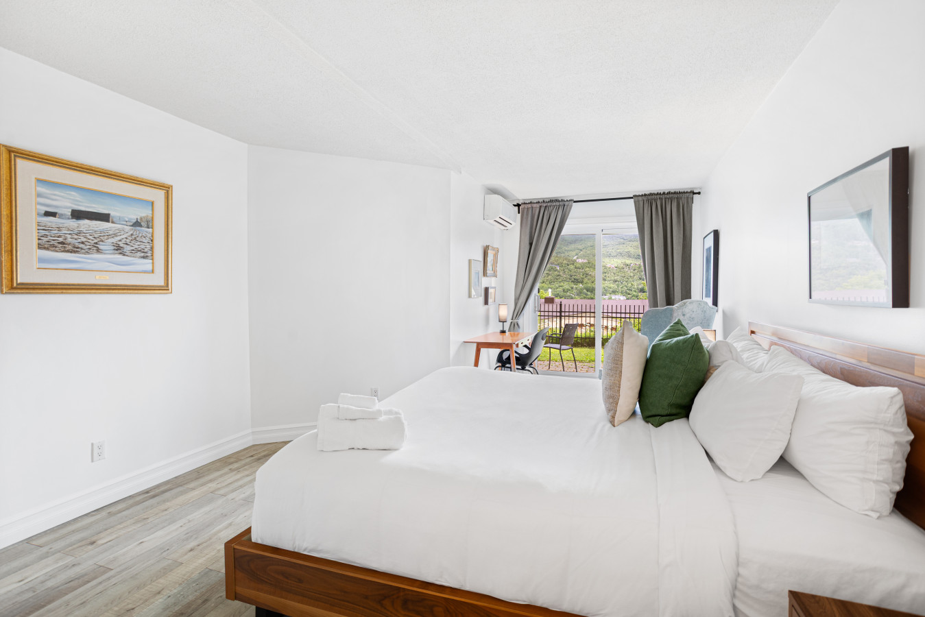 Recently renovated, this cozy condo is just 5 minutes from Mont-Tremblant’s south side, placing you near the picturesque pedestrian village, boutique shops, gourmet restaurants, and year-round activities, including world-class skiing. The bedroom features a luxurious king-size bed with an ensuite bathroom. We also provide a double sofa bed in the common area.