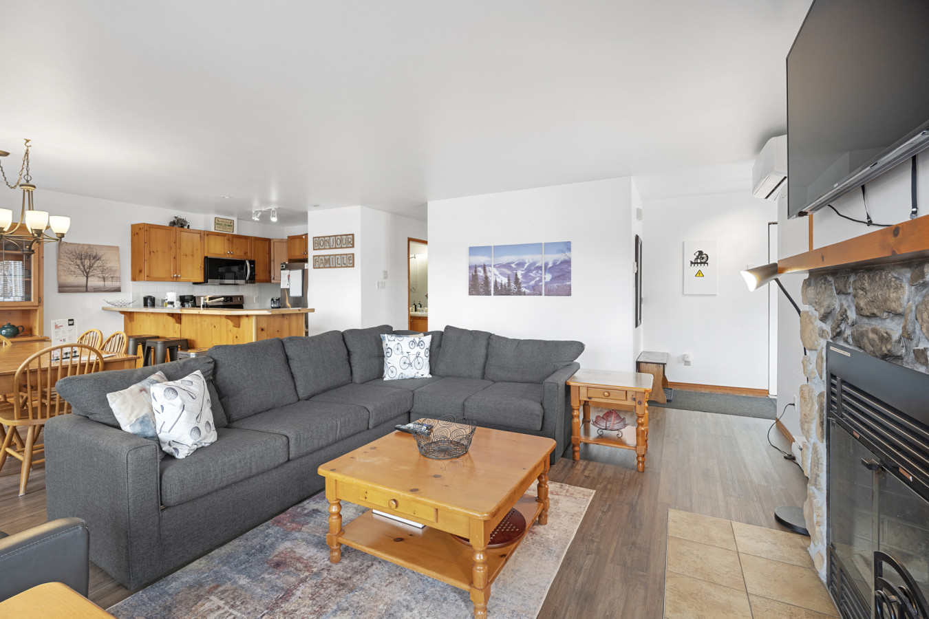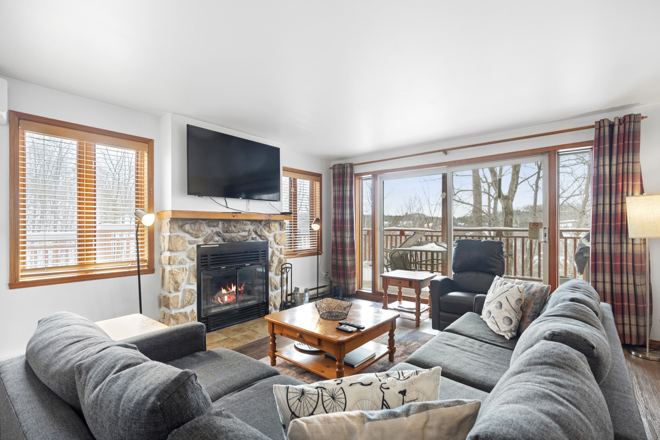 You can access most amenities within walking distance and you also have access to a free shuttle to the pedestrian village just outside the condo. Mont-Tremblant public transits/buses are free all around town.