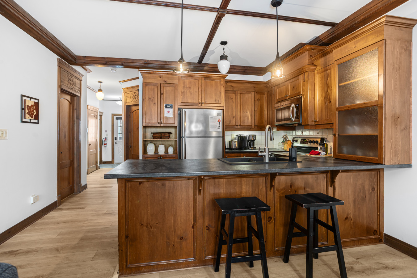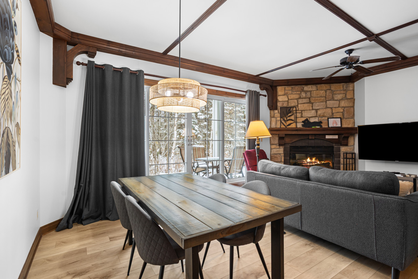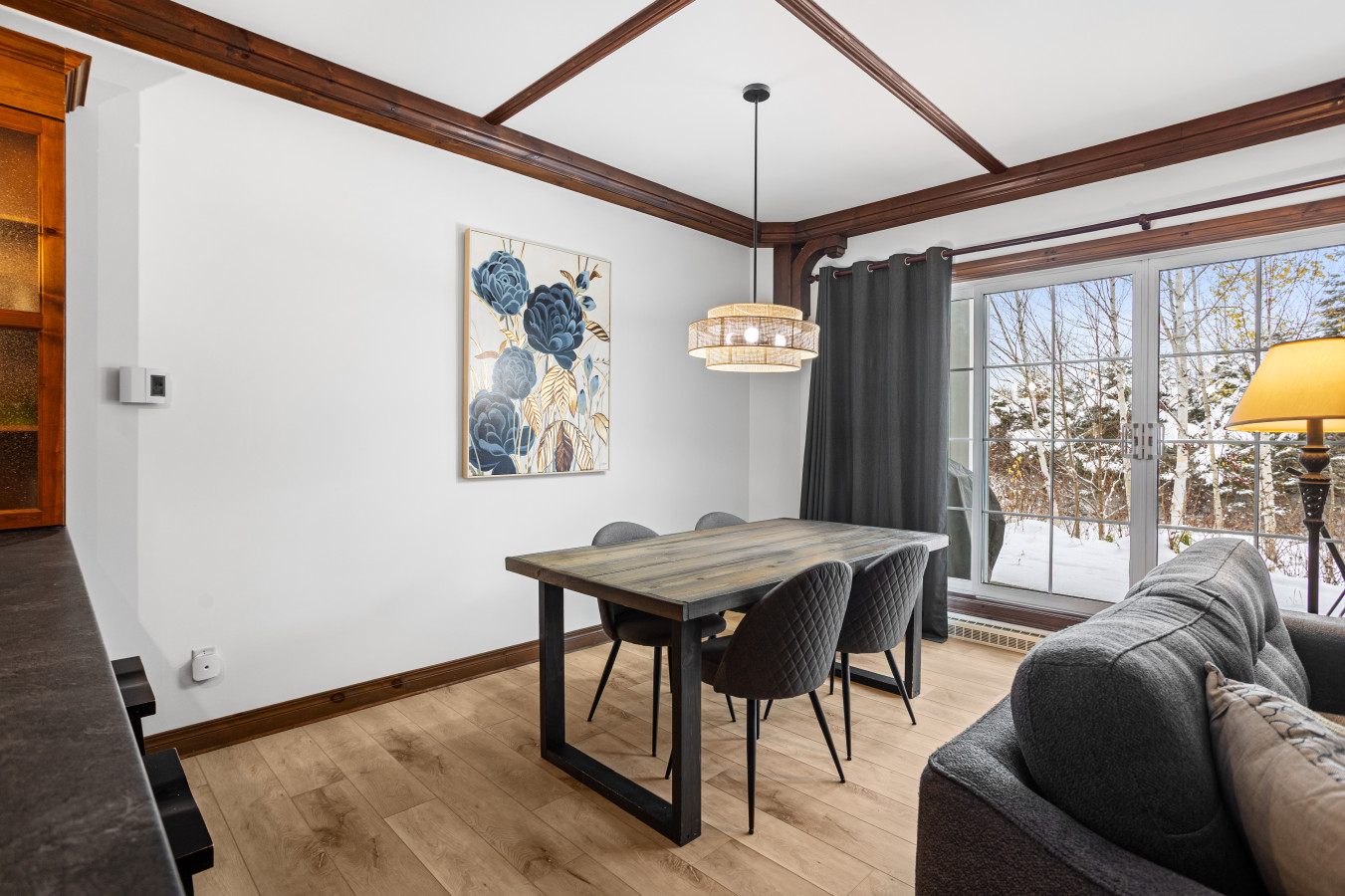 This property offers you the perfect combination of a quiet and peaceful area and proximity to the pedestrian village. The panoramic view of the mountain and the ski slopes will make you rediscover the beauty of the Laurentians. In summer, the resort offers access to a swimming pool, hot tub and children’s play area.