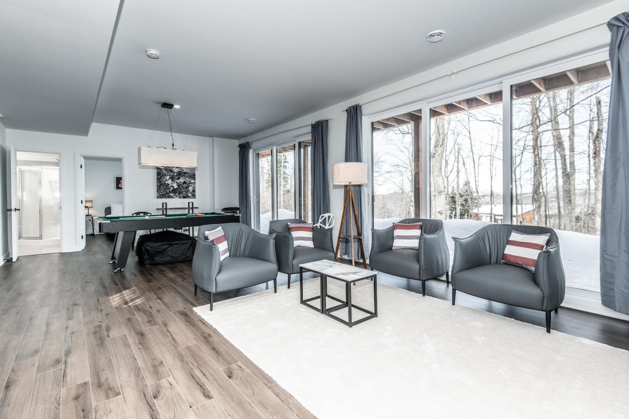 This newly constructed luxurious 4 bedroom lodge is the ideal location for a Tremblant getaway. The property is located in a private domain just 15 minutes from the Tremblant resort and close to many activities near by.