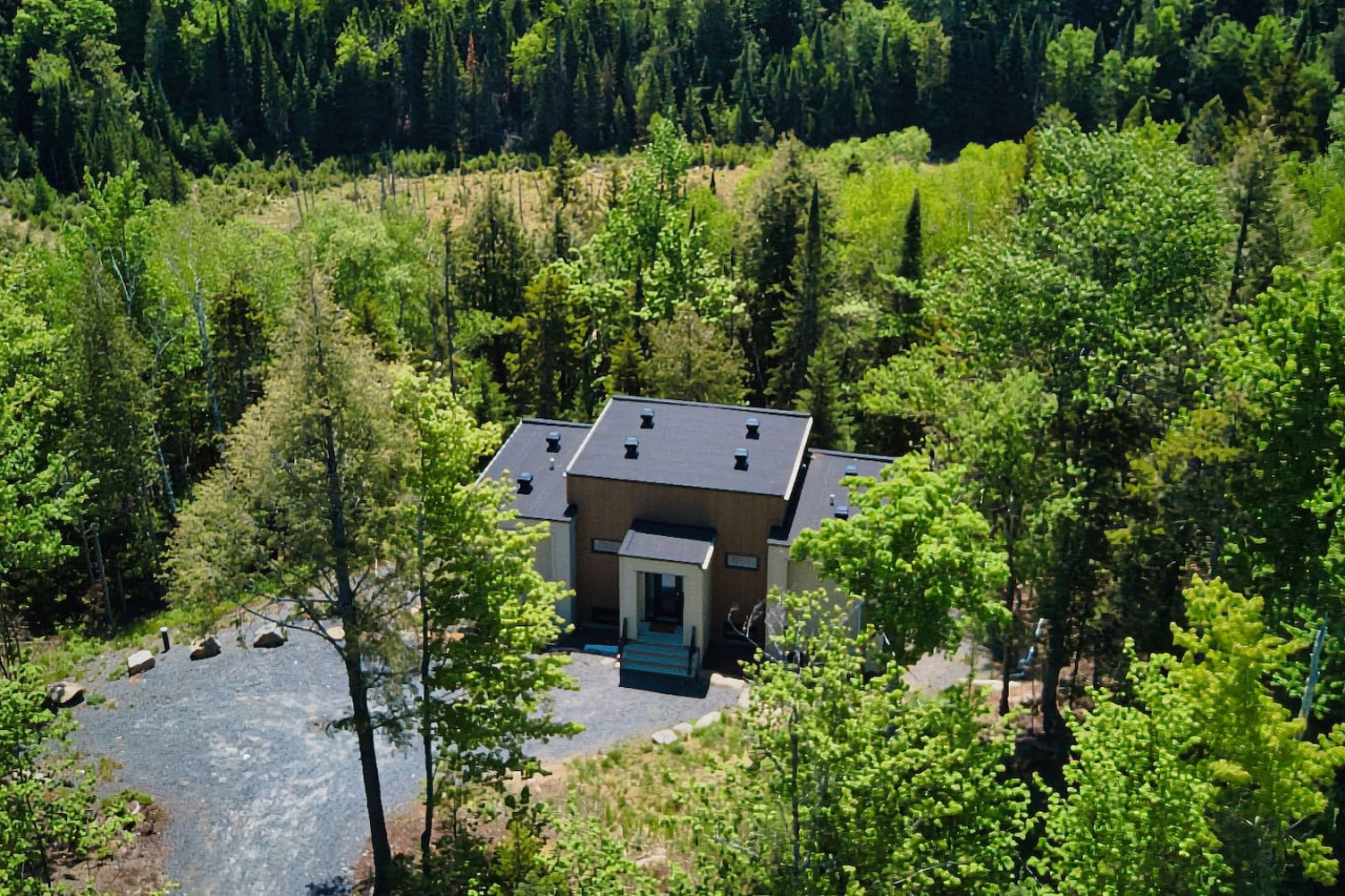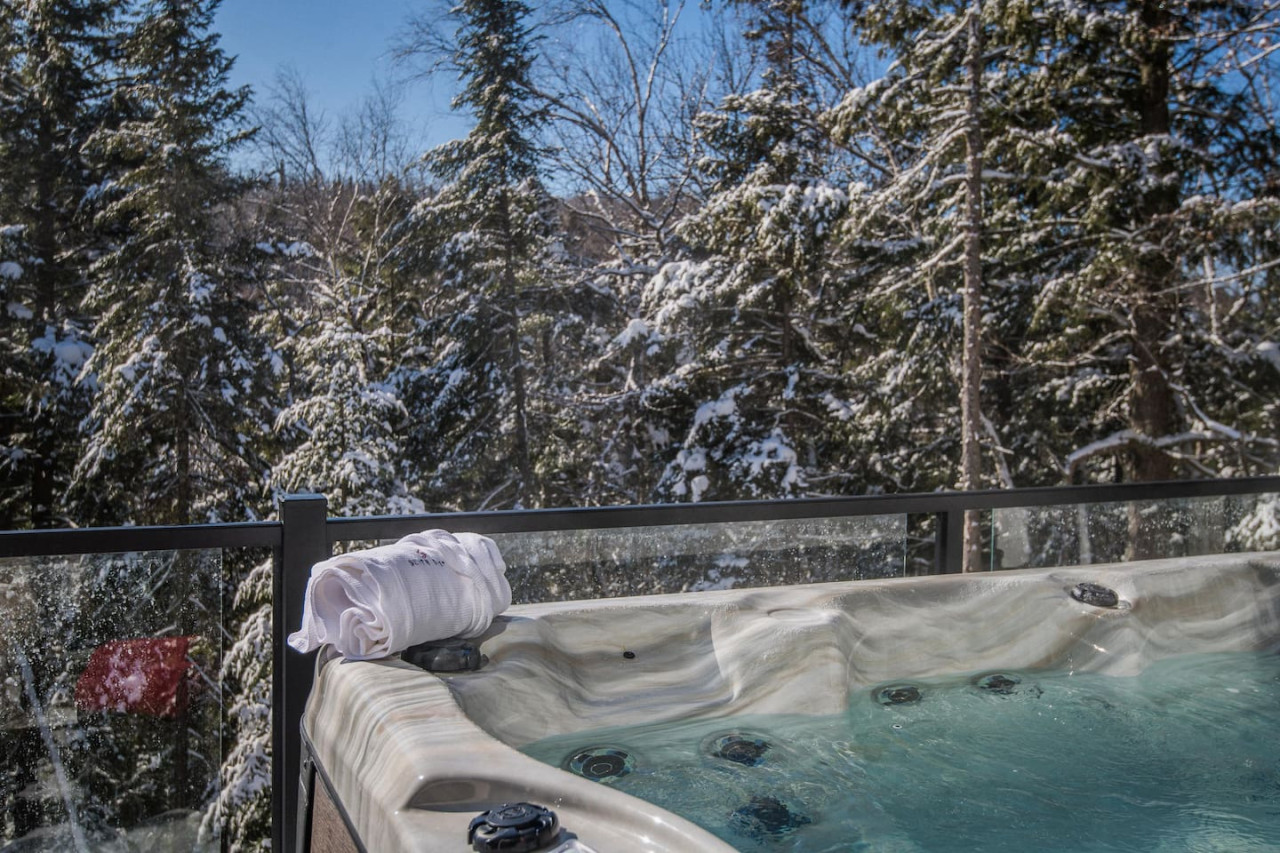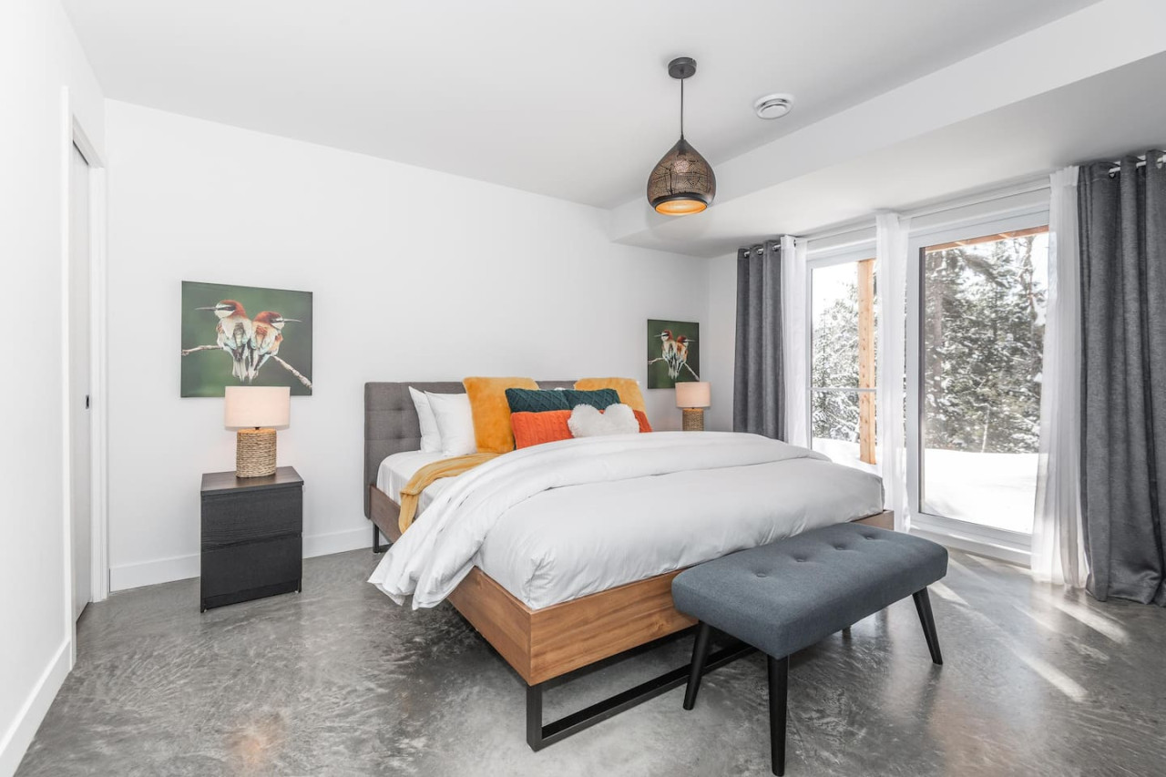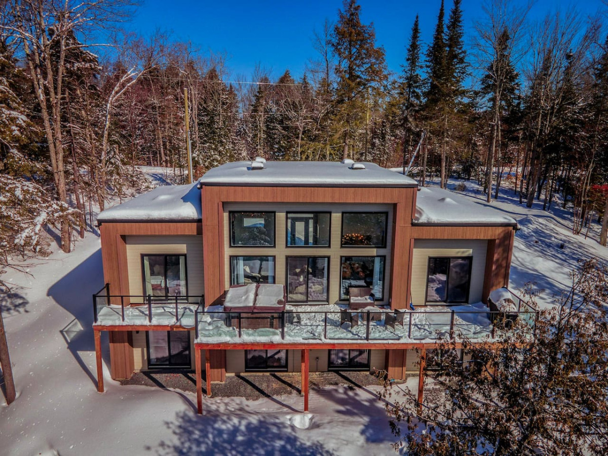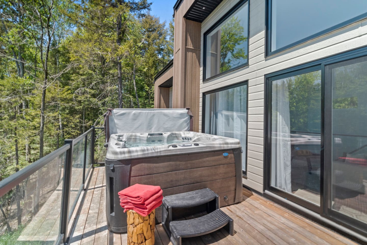 Beautifully surrounded by forest, Lodge Sky is a spacious modern chalet that spans garden level and ground floor. Ideally located in private area, 15 minutes away from Mont Tremblant.