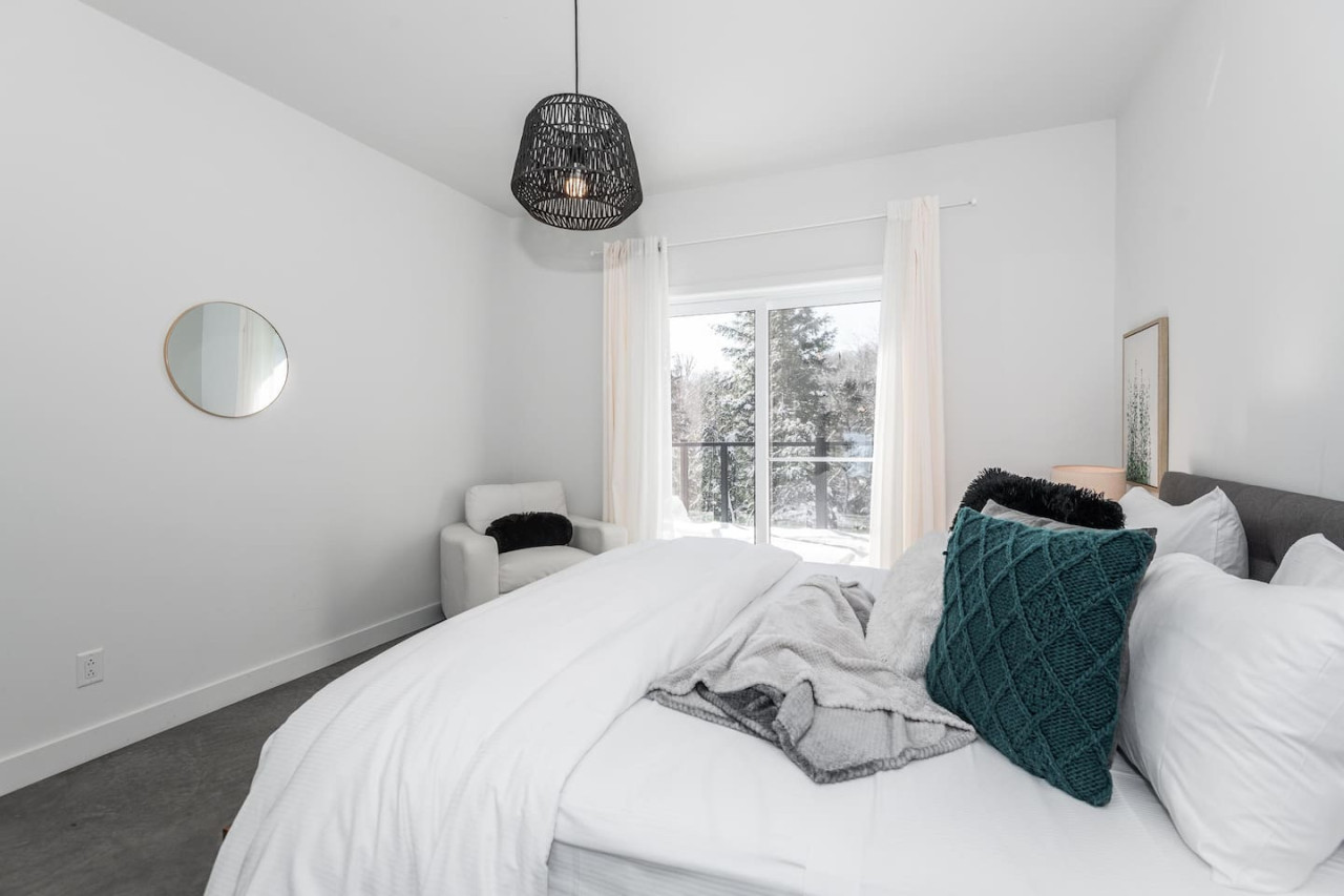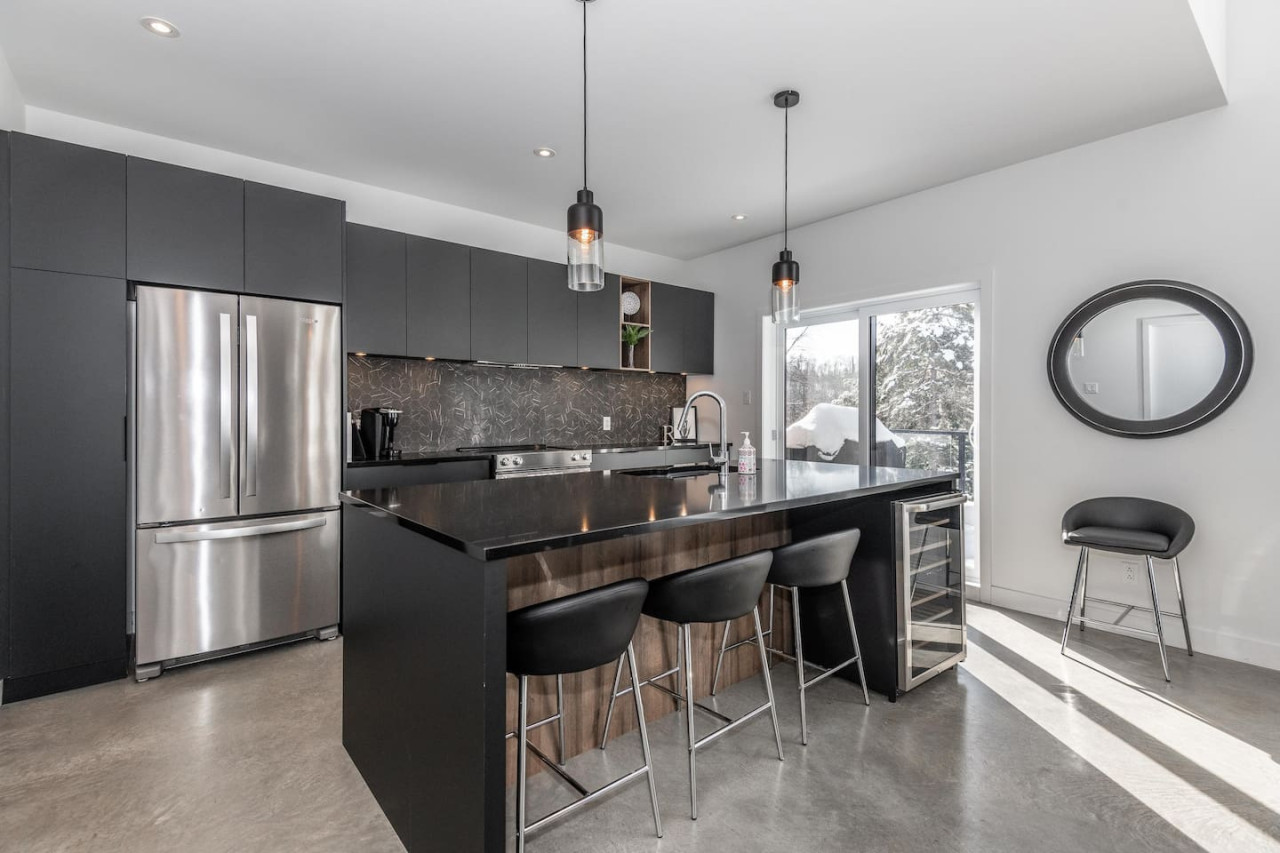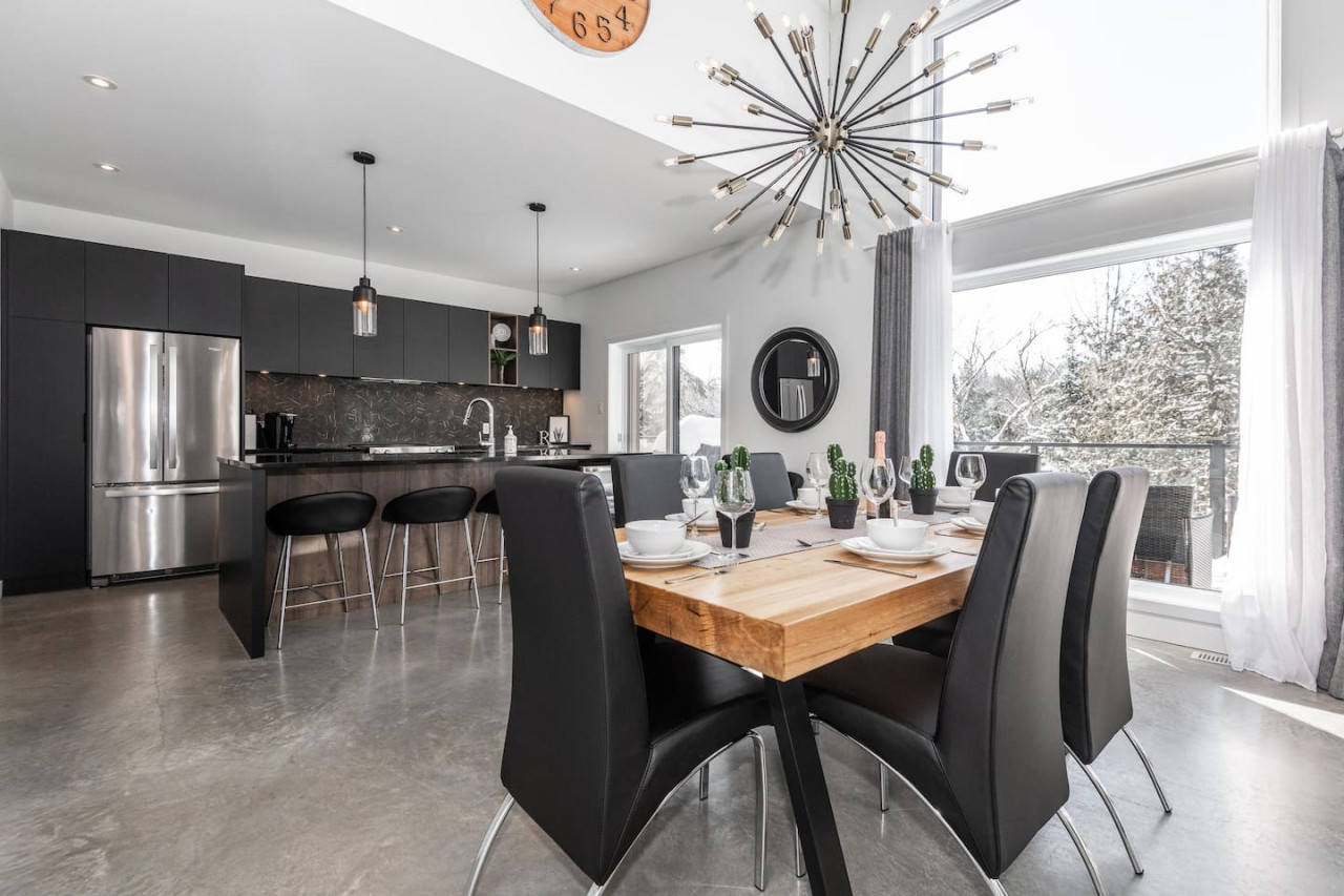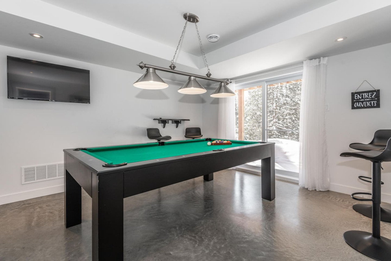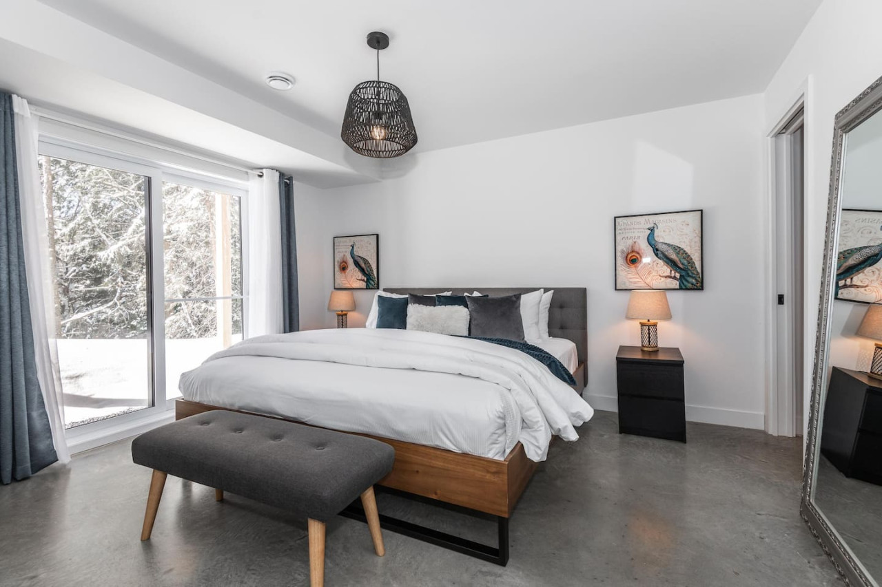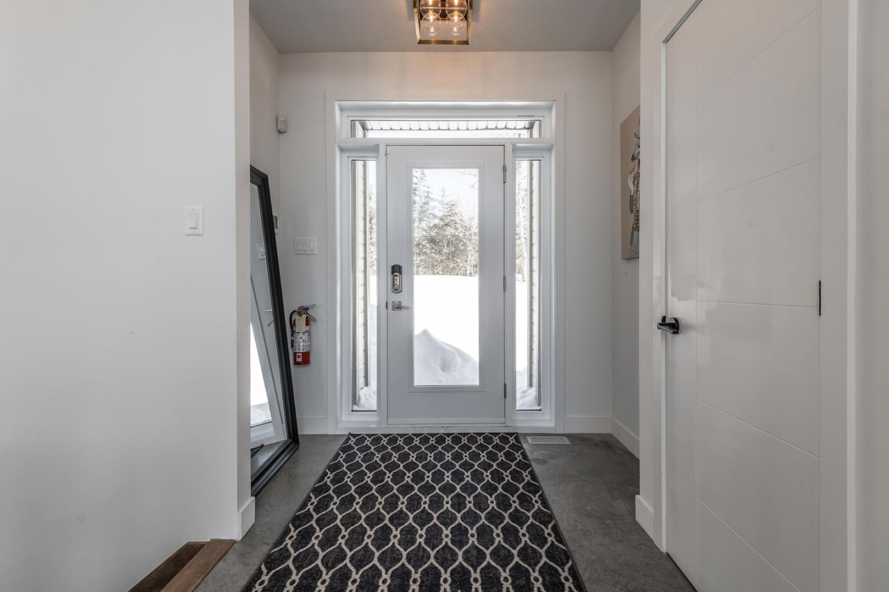 Beautifully surrounded by forest, Lodge Sky is a spacious modern chalet that spans garden level and ground floor. Ideally located in private area, 15 minutes away from Mont Tremblant.