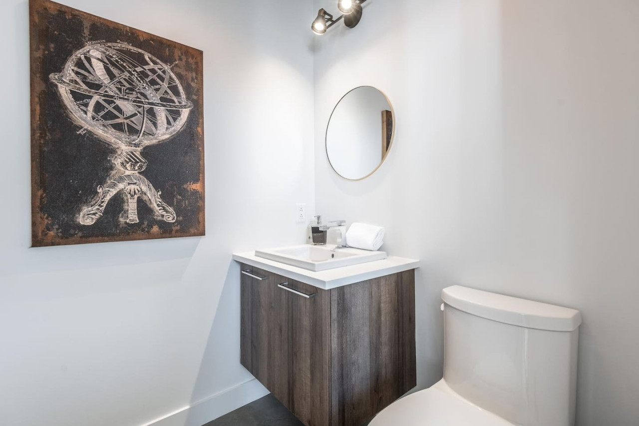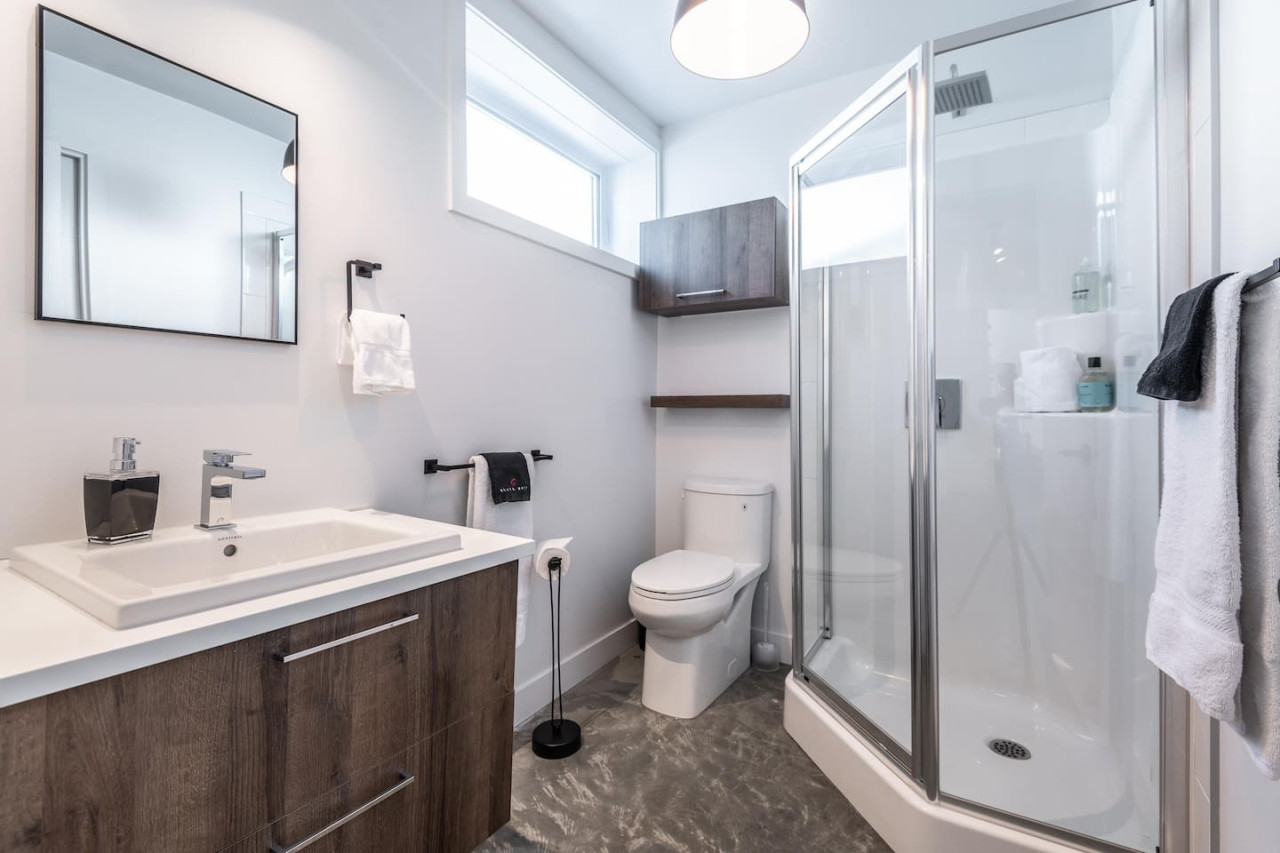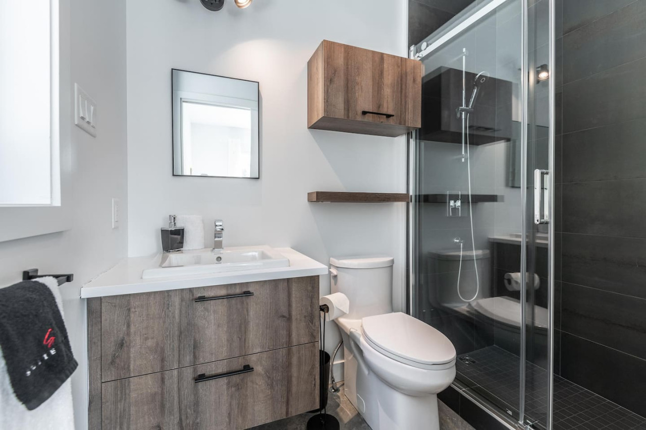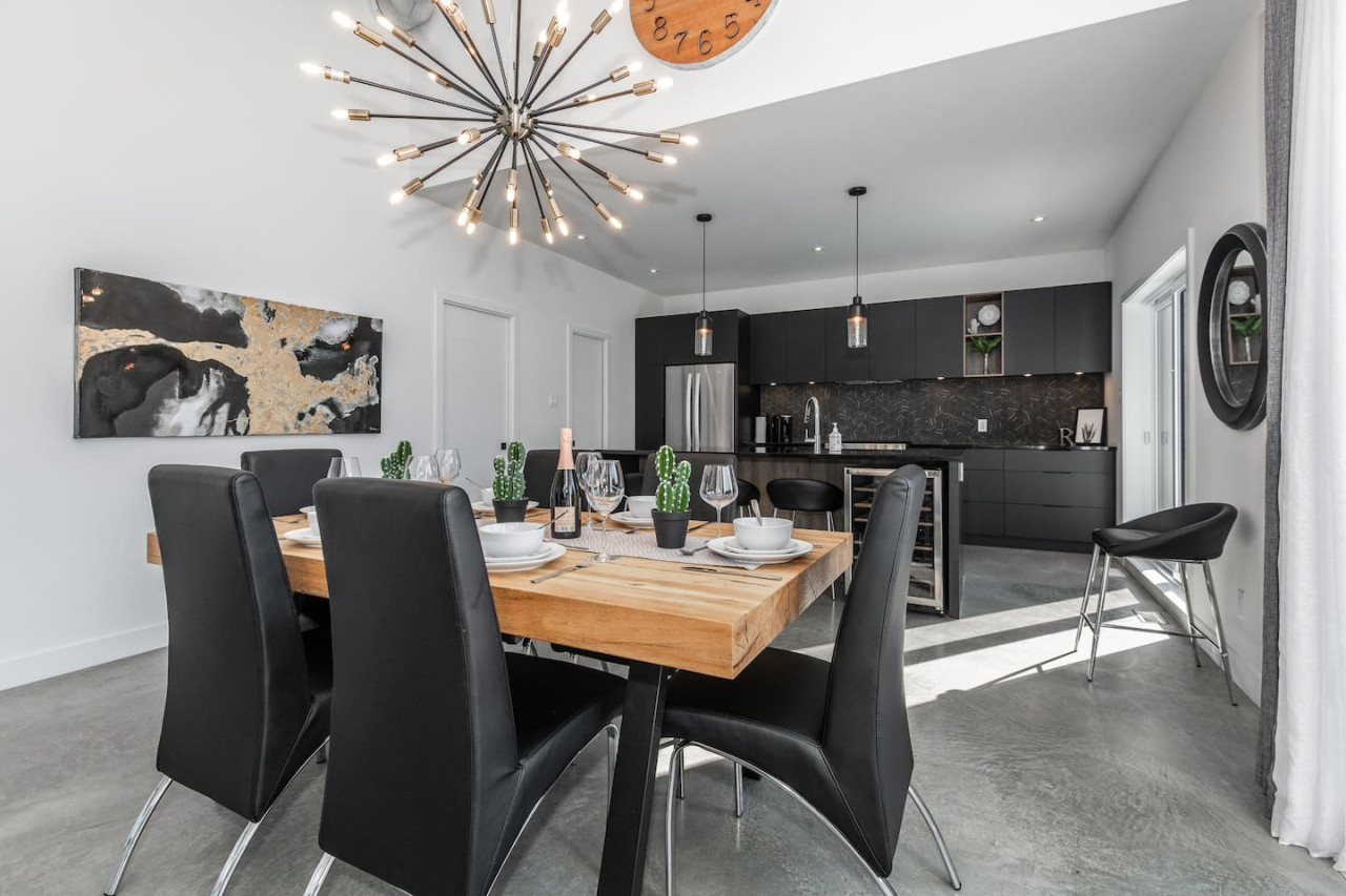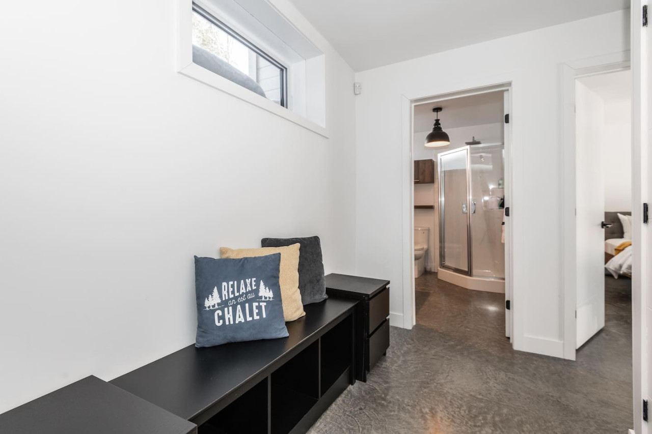 Beautifully surrounded by forest, Lodge Sky is a spacious modern chalet that spans garden level and ground floor. Ideally located in private area, 15 minutes away from Mont Tremblant.