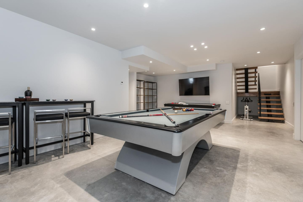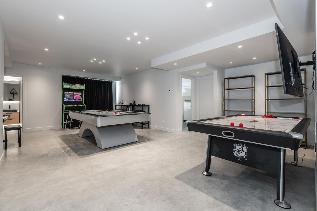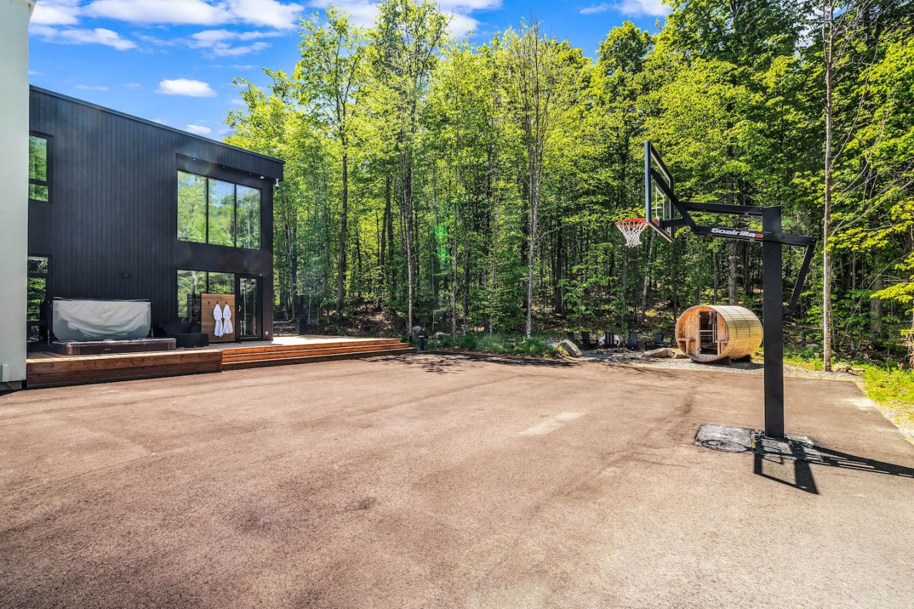 When luxury meets the modern world. This home boasts 5 bedrooms spread on 3 floors. A large open concept living area with a stunning marble fireplace column, surrounded by floor to ceiling windows allowing for sun exposure at any time of the day. This prestigious vacation home features an incredible outdoor area with hot tub, sauna, and a basketball court. A large deck surrounds half the property.