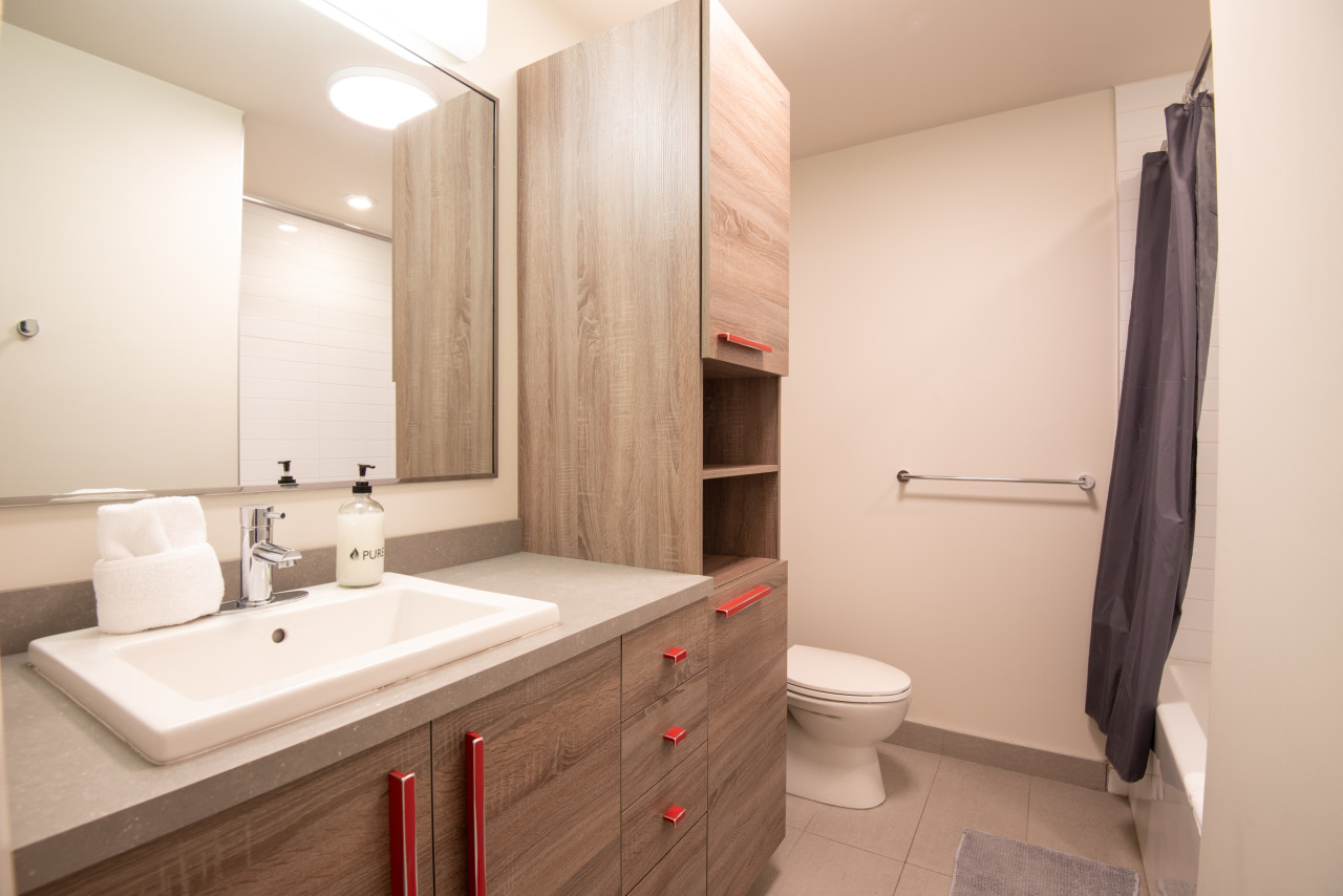 Clean and cozy condo with gas fireplace! Located in a new building, very well soundproofed! Lots of storage space as well.