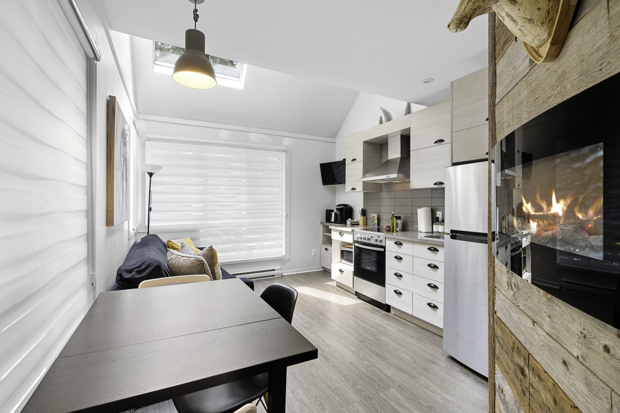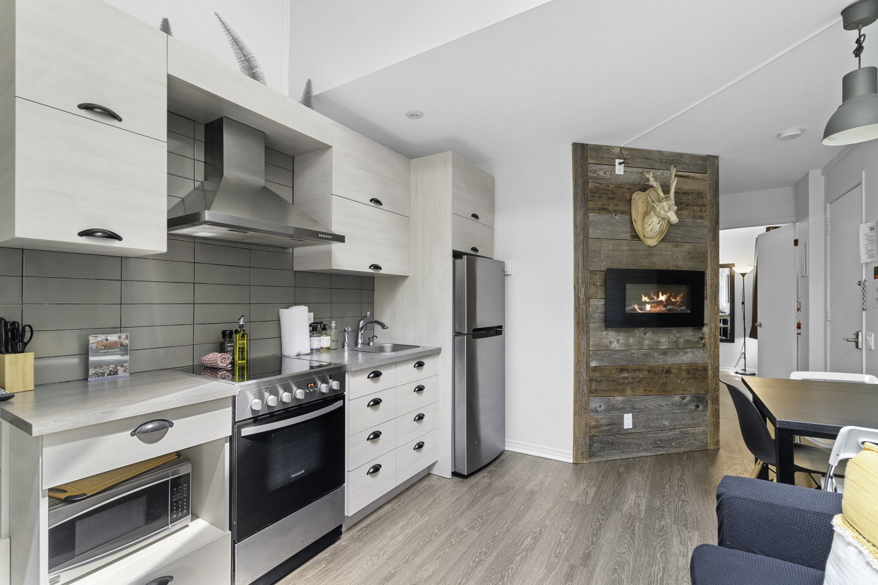 Ski-In/Ski-out condo with a nice view on the river. Tranquility, but only 1 minute walk from everything the resort has to offer: restaurants, shopping and lots of activities. Nice fully equipped kitchen. Air conditioning (summer only) and a wall mounted electric fireplace. 30″ TV with base cable Cogeco, WIFI included. Parking spot right in front of the condo included. Closed bedroom with queen size bed. Sofa-bed in the living room. Ideal for a couple or for families of up to 4. Charming little 320 square feet condo completely renovated in 2017. located directly at the bottom of the ski hill (ski-in/ski-out). the condo is equipped with air conditionning (summer only), a wall mounded lectric fireplace, a newly renovated fully equiped kitchen with stainless steel appliances (refrigerator, micr-wave, oven), small kitchen table, 30″ TV with base cable Cogeco, internet WIFI included, closed bedroo with queen bed, full bathroom and a parking spot directly in front of the condo. The location of the condo will charm you! right in front of a small river, you will have tranquility while being close to everything you need (restaurant, activities, shopping). you are 1 minute walk from the main area of the resort. This unit has ski access as long as there is enough snow. You have access to the entire condo as well as an exterior locker for skis, snowboard, etc… Fell free to contact me any time you need something! Wall-Mounted AC in the main room. No central AC. Before you arrive, you will be asked to complete guest verification through third-party provider Truvi. This is done to ensure we are keeping up-to-date with short-term rental regulations as well as providing both our guests and our properties with extra protection. To cover you up to 500CAD, it includes the choice between: Option 1: a security deposit with a non-refundable fee of 15CAD Option 2: a non-refundable damage waiver of 35CAD. Truvi will contact you via email and/or text to complete the verification. Please do so prior to arriving at the property to enable a quick and easy check-in process. CITQ #294952