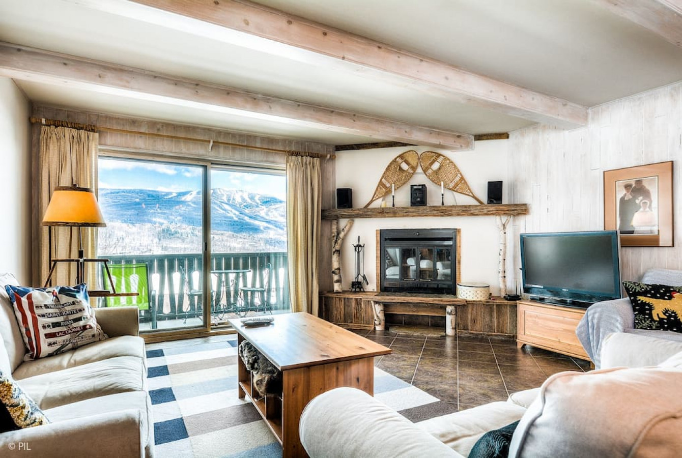 Relax and reconnect as a family in this stunning condo only accessible by stairs with a private balcony and stunning views of the mountains in the heart of Mont Tremblant!
